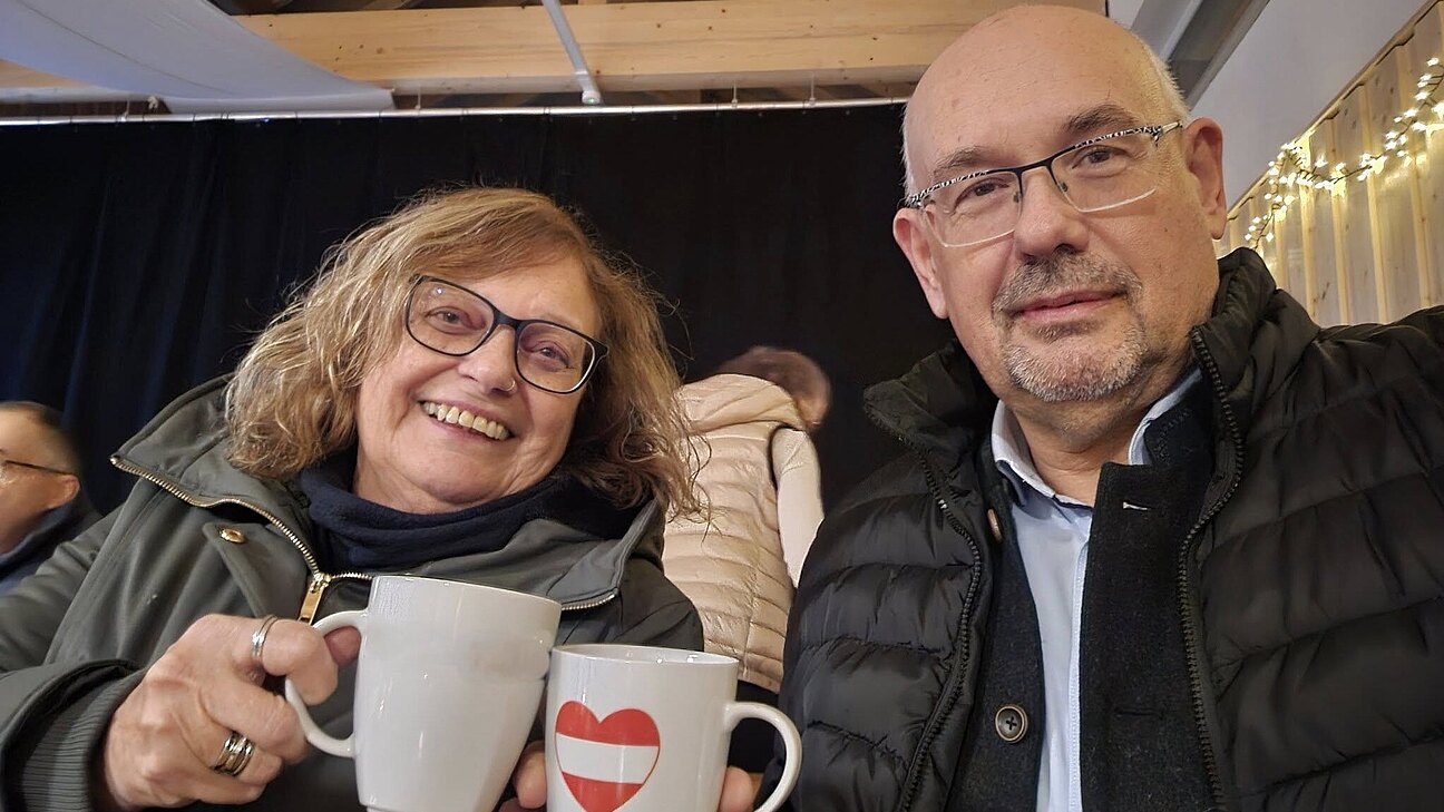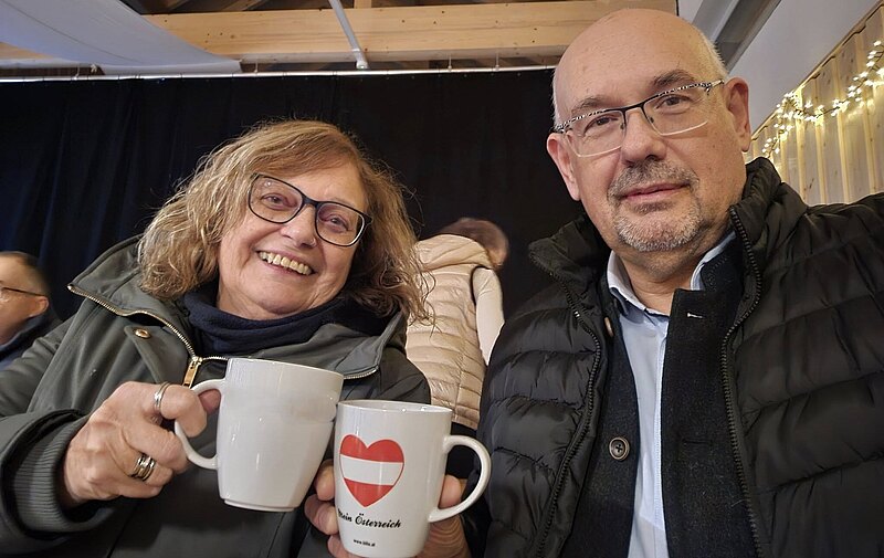 Bei einem Becher Glühwein oder Beerenpunsch konnten drinnen angenehme Gespräche geführt werden, aber auch draußen beim wärmenden Feuer.