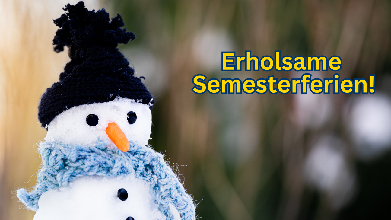 Wir wünschen allen Schülerinnen und Schülern sowie ihren Familien erholsame Semesterferien, schöne gemeinsame Momente und einen guten Start ins zweite Schulhalbjahr.