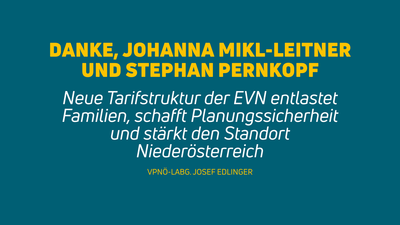 Die angekündigte Senkung der EVN-Stromtarife ab April 2026 ist ein wichtiges Signal für die Haushalte in Niederösterreich und zeigt, dass die von LH Johanna Mikl-Leitner und LH-Stv. Stephan Pernkopf mit Nachdruck eingeforderten Änderungen auf Bundesebene nun konkrete und positive Auswirkungen für die Niederösterreicherinnen und Niederösterreicher haben. „Ich danke LH Johanna Mikl-Leitner und LH-Stv. Stephan Pernkopf ausdrücklich für ihren konsequenten Einsatz für die Niederösterreicherinnen und Niederösterreicher. Die neue Tarifstruktur der EVN ist ein spürbarer Schritt in die richtige Richtung: Sie entlastet Familien, schafft Planungssicherheit und stärkt den Standort Niederösterreich. Leistbare Energie ist eine zentrale Voraussetzung für Lebensqualität, Wettbewerbsfähigkeit und Investitionen im Land und damit ein wesentlicher Beitrag für die beste Zukunft unserer Kinder “, betont VPNÖ-Energiesprecher LAbg. Josef Edlinger.