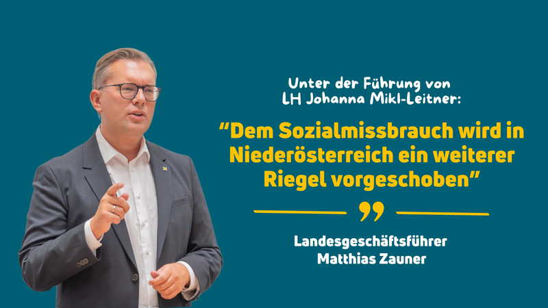 Volkspartei Niederösterreich Landesgeschäftsführer Matthias Zauner betont: „Die Landesregierung unter Führung von Landeshauptfrau Johanna Mikl-Leitner schiebt mit der Novelle des Sozialhilfe-Gesetzes dem vorsätzlichen Sozialmissbrauch in Niederösterreich einen weiteren Riegel vor. Wir haben in Niederösterreich bereits das strengste Sozialhilfegesetz Österreichs und wollen im Sinne der Fairness gegenüber der arbeitenden Bevölkerung weitere Verschärfungen vornehmen. Eine aktuelle Umfrage zeigt: 75 Prozent der Bevölkerung stehen hinter einem österreichweit einheitlichen Sozialhilfesystem. Dieses klare Meinungsbild macht deutlich, dass die Menschen Gerechtigkeit erwarten – unabhängig davon, in welchem Bundesland sie leben. Wir fordern daher eine österreichweite Harmonisierung nach dem Modell Niederösterreichs – die niederösterreichische Sozialhilfe muss die Oberkante sein. Nur so ist sichergestellt: Wer arbeitet, darf nicht der Dumme sein! Die Sozialhilfe soll für jene da sein die das System brauchen, um nach Schicksalsschlägen wieder Fuß zu fassen – dieser Zusammenhalt zeichnet uns als Bundesland aus. Wer unser großzügiges Sozialsystem jedoch missbraucht, muss mit Sanktionen rechnen.“
