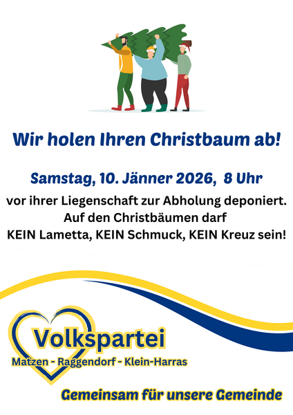 Die Christbaumabholung in Matzen, Raggendorf und Klein-Harras findet am 10. Januar 2026 um 8:00 Uhr statt.